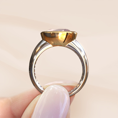 Are you looking for a tasteful ring with an eye-catching single gemstone? How do you like this Evelyne ring? This white gold Evelyne ring is set with a beautiful 10x8 mm oval morganite champagne. The morganite champagne is carefully selected by our morganite champagne suppliers. Subsequently, these gemstones are then set by our goldsmith according to ancient tradition. The ring will then be polished to perfection creating a unique ring with a stunning morganite champagne. Created especially for you. A customized fantasy ring is the perfect gift! New exquisite designs are added daily by our team of passionate goldsmiths. And each design can be customized. Simply customize the precious metals and the colour of gemstones which will be used, for example. This makes your design of the fantasy Evelyne ring truly unique!By using a combination of the latest modern techniques, combined with ancient crafting, we can make all our rings in our own studio. Each jewel is made to order. This is advantageous because we can offer you a price you won't find anywhere else.To make it easier for you, we offer a 30 day return policy. Check our terms and conditions.