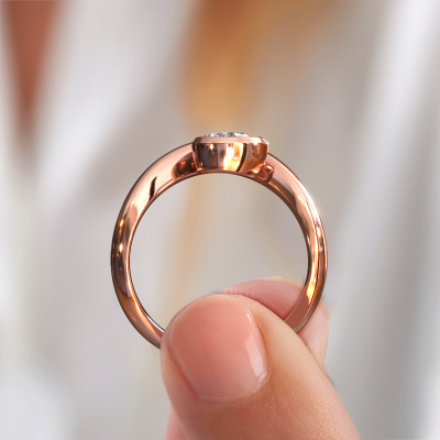 This ring called Lena is made of 14 Carat rose gold and is set with diamond. Are you in the market for a unique rose gold ring with a modern twist? Then this ring might suit you. Simply customize to your or her liking. It suits the contemporary