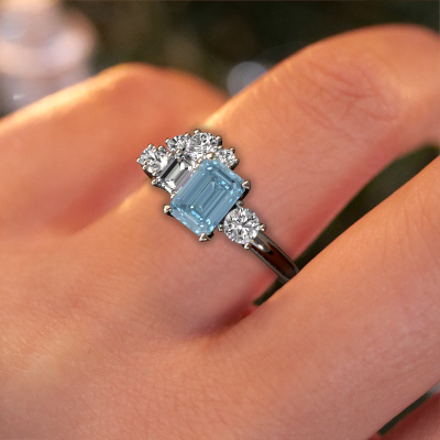 How would you describe your own style? Are you looking for something uniquely different? This fashionable white gold Sabina ring is astonishing! Simply customize to your or her own liking. This ring is set with blue lab grown diamond. These blue lab grown diamonds have been carefully selected because your ring must be adorned with nothing but the most beautiful gemstone. Wouldn't you agree? Our expert goldsmith will create your ring in our own crafting studios, where the blue lab grown diamond will be set with care. The ring will then be polished to perfection to give it that extra sparkle. It's a perfect ring for a woman of excellent taste!Customize your own fashionableSabina ring, which will then be created by our goldsmiths with great passion. Do you prefer a different option than is shown here in the white gold Sabina ring? Then our online tools offers various options. Feel free to ask us for help if you are unable to succeed. We are happy to answer your questions!Because we design and deliver our own rings, we can offer you a ring at a price you won't find anywhere else. A ring is made to order, which helps prevent excess supplies, so we can make you a great price offer. We understand it feels risky, buying your ring online, but we will gladly assist in the designing process, taking your budget into consideration.To make it easier for you, we offer a 30 day return policy. Check our terms and conditions.