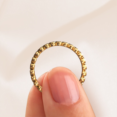What a fine stackable ring indeed! This ring is called Joselyn. A classy fine stackable ring, that suits the contemporary, fashionable woman. This stackable ring is proof of our new method of crafting. We came up with a process in our own studio in which the old as well as new ways of crafting are unified in perfect harmony. We make a detailed 3D design of the intended ring. Then our expert goldsmith crafts your ring into perfection. A unique ring, styled to your liking. As soon as you finished designing your Joselyn stackable ring with our online tool, our goldsmiths will start their creative process of making your ring. This will be done with passion and care, according ancient crafting. On top of that, our jewels are made of eco-friendly materials. Simply customize online with our online tool, if you want any changes made. If you want specific changes made to your Joselyn stackable ring, that are unavailable in our online tool, please feel free to contact our expert designers.By using our modern techniques, we can design and customize the finest quality jewels with the utmost care for you. Our rings are always priced 30 percent lower than other jewellers. We make rings to order, so we don't have to maintain a large stock. If you have a certain budget, we are more than happy to advice you accordingly.To make it easier for you, we offer a 30 day return policy. Check our terms and conditions.