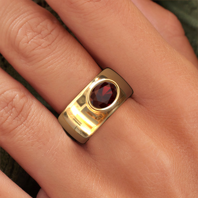 Are you looking for a birthstones ring with an eye-catching single gemstone? How do you like this Anouschka ring? This gold Anouschka ring is set with a beautiful 8x6 mm oval garnet. The garnet is carefully selected by our garnet suppliers. Subsequently, these birthstones are then set by our goldsmith according to ancient tradition. The ring will then be polished to perfection creating a unique ring with a stunning garnet. Created especially for you. Our goldsmiths passionately create your customized ring to your liking with the utmost care. The gold ring, as shown here, can be customized using our online tool. Feel free to ask our jewel designers for assistance if you want changes made which are unavailable in our online tool. We are happy to answer your questions.After receiving your order, our goldsmiths will passionately start the creative process of making your ring in our own studio. Because we don't have a big stockpile, these costs will not be passed on to you. Our pricing is proof of that! We offer top quality jewels at lowest price, guaranteed.To make it easier for you, we offer a 30 day return policy. Check our terms and conditions.