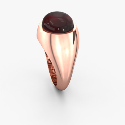 In this photo the rose gold Laurien ring is set with a cabochon garnet. Cabochon means a garnet is shaped first, not faceted, into a specific shape, such as a drop, heart or oval cabochon. Subsequently, it is polished until the gemstone has a orb shaped surface. A cabochon gemstone is a stunning, classy eye-catcher that matches perfectly with a contemporary as well as a vintage style. Our expert goldsmiths shape the fashionable ring to perfection which makes it unique. The cabochon garnet is set so its unique qualities are strengthened. The best part of this fashionable ring is that you can customize it to your own liking. Your style, your choice, your ring. On top of that, your modern rose gold ring will be made by hand with eco-friendly materials! Please feel free to easily customize the ring, using our online tool.After receiving your order, our goldsmiths will passionately start the creative process of making your ring in our own studio. Because we don't have a big stockpile, these costs will not be passed on to you. Our pricing is proof of that! We offer top quality jewels at lowest price, guaranteed.To make it easier for you, we offer a 30 day return policy. Check our terms and conditions.