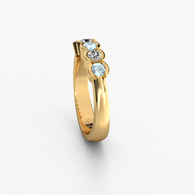 This ring is called Lotte 5. It is made of 14 Carat gold and is set with 3 mm aquamarine. Are you looking for a unique gold ring with a modern appearance? Then this is the ring for you. Simply customize to your or her liking. Perfect for a modern, contemporary woman! This 5 stones ring is adorned with stunning aquamarine. It was carefully selected because your ring must be adorned with nothing but the most beautiful gemstones. Our expert goldsmith will create your ring in our own studio, where the aquamarine will be set with great care. The ring will then be polished to perfection to create a beautiful ring. By using a combination of the latest modern techniques, combined with ancient crafting, we can make all our rings in our own studio. Each jewel is made to order. This is advantageous because we can offer you a price you won't find anywhere else.Our team of talented, passionate designers add new ring designs to our online collection daily. Our objective in doing so, is to be able to offer you a wide variety of jewels. Please feel free to request a quote if you have specific wishes for your ring. We guarantee to make you an offer you can't refuse.To make it easier for you, we offer a 30 day return policy. Check our terms and conditions.