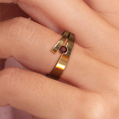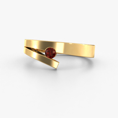 This ring is called Rosario. It is made of 14 Carat gold and is set with 3 mm garnet. Are you looking for a unique gold ring with a modern appearance? Then this is the ring for you. Simply customize to your or her liking. Perfect for a modern, contemporary woman! This edgy ring is adorned with stunning garnet. It was carefully selected because your ring must be adorned with nothing but the most beautiful gemstones. Our expert goldsmith will create your ring in our own studio, where the garnet will be set with great care. The ring will then be polished to perfection to create a beautiful ring. Are you on a budget? Please feel free to contact us, so we can go discuss your options. We offer our rings at guaranteed best price, because we make them to order. You won't find such a price anywhere else!