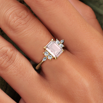 How would you describe your own style? Are you looking for something uniquely different? This fashionable gold Sade ring is astonishing! Simply customize to your or her own liking. This ring is set with morganite champagne. These morganite champagne have been carefully selected because your ring must be adorned with nothing but the most beautiful gemstone. Wouldn't you agree? Our expert goldsmith will create your ring in our own crafting studios, where the morganite champagne will be set with care. The ring will then be polished to perfection to give it that extra sparkle. It's a perfect ring for a woman of excellent taste!As soon as you finished designing your Sade ring with our online tool, our goldsmiths will start their creative process of making your ring. This will be done with passion and care, according ancient crafting. On top of that, our jewels are made of eco-friendly materials. Simply customize online with our online tool, if you want any changes made. If you want specific changes made to your Sade ring, that are unavailable in our online tool, please feel free to contact our expert designers.By using a combination of the latest modern techniques, combined with ancient crafting, we can make all our rings in our own studio. Each jewel is made to order. This is advantageous because we can offer you a price you won't find anywhere else.To make it easier for you, we offer a 30 day return policy. Check our terms and conditions.