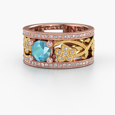 Do you have a vintage fetish? Then this rose gold Severine ring suits you perfectly. It's a contemporary design, based on vintage designs. A slightly romantic, extraordinary design! Even more when you customize to your liking. This graceful ring is set with exquisite blue topaz. As you can see, you can simply choose a gemstone that matches your style. Each gemstone is carefully selected by our merchants whom are spread throughout the world. Nothing but the best gems for our expert goldsmith! After all, it is his crowning glory!Our goldsmiths passionately create your customized ring to your liking with the utmost care. The rose gold ring, as shown here, can be customized using our online tool. Feel free to ask our jewel designers for assistance if you want changes made which are unavailable in our online tool. We are happy to answer your questions.After receiving your order, our goldsmiths will passionately start the creative process of making your ring in our own studio. Because we don't have a big stockpile, these costs will not be passed on to you. Our pricing is proof of that! We offer top quality jewels at lowest price, guaranteed.To make it easier for you, we offer a 30 day return policy. Check our terms and conditions.