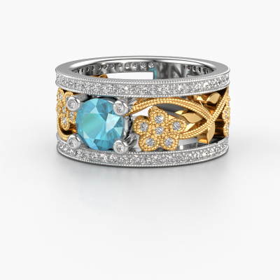 Do you have a vintage fetish? Then this white gold Severine ring suits you perfectly. It's a contemporary design, based on vintage designs. A slightly romantic, extraordinary design! Even more when you customize to your liking. This graceful ring is set with exquisite blue topaz. As you can see, you can simply choose a gemstone that matches your style. Each gemstone is carefully selected by our merchants whom are spread throughout the world. Nothing but the best gems for our expert goldsmith! After all, it is his crowning glory!Our goldsmiths passionately create your customized ring to your liking with the utmost care. The white gold ring, as shown here, can be customized using our online tool. Feel free to ask our jewel designers for assistance if you want changes made which are unavailable in our online tool. We are happy to answer your questions.After receiving your order, our goldsmiths will passionately start the creative process of making your ring in our own studio. Because we don't have a big stockpile, these costs will not be passed on to you. Our pricing is proof of that! We offer top quality jewels at lowest price, guaranteed.To make it easier for you, we offer a 30 day return policy. Check our terms and conditions.