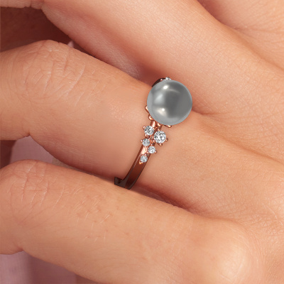 How would you describe your own style? Are you looking for something uniquely different? This graceful rose gold Royce PRL ring is astonishing! Simply customize to your or her own liking. This ring is set with grey pearl. These grey pearls have been carefully selected because your ring must be adorned with nothing but the most beautiful gemstone. Wouldn't you agree? Our expert goldsmith will create your ring in our own crafting studios, where the grey pearl will be set with care. The ring will then be polished to perfection to give it that extra sparkle. It's a perfect ring for a woman of excellent taste!Our goldsmiths passionately create your customized ring to your liking with the utmost care. The rose gold ring, as shown here, can be customized using our online tool. Feel free to ask our jewel designers for assistance if you want changes made which are unavailable in our online tool. We are happy to answer your questions.Because we design and deliver our own rings, we can offer you a ring at a price you won't find anywhere else. A ring is made to order, which helps prevent excess supplies, so we can make you a great price offer. We understand it feels risky, buying your ring online, but we will gladly assist in the designing process, taking your budget into consideration.To make it easier for you, we offer a 30 day return policy. Check our terms and conditions.