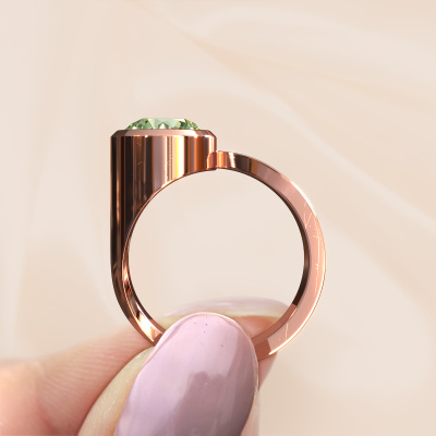 Are you looking for a special ring with an eye-catching single gemstone? How do you like this Nakia ring? This rose gold Nakia ring is set with a beautiful 8 mm round green lab grown diamond. The green lab grown diamond is carefully selected by our green lab grown diamonds suppliers. Subsequently, these birthstones are then set by our goldsmith according to ancient tradition. The ring will then be polished to perfection creating a unique ring with a stunning green lab grown diamond. Created especially for you. A customized design ring is the perfect gift! New exquisite designs are added daily by our team of passionate goldsmiths. And each design can be customized. Simply customize the precious metals and the colour of gemstones which will be used, for example. This makes your design of the design Nakia ring truly unique!After receiving your order, our goldsmiths will passionately start the creative process of making your ring in our own studio. Because we don't have a big stockpile, these costs will not be passed on to you. Our pricing is proof of that! We offer top quality jewels at lowest price, guaranteed.To make it easier for you, we offer a 30 day return policy. Check our terms and conditions.