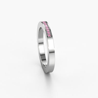 This Loes 1 stackable ring in platinum is set with pink sapphire. This platinum stacked Loes 1 ring is the perfect addition to your ring collection! As the name suggests, it is a ring which can be combined on one finger with another ring. It gives you the opportunity to create your own style. A stacked ring usually represents a certain memory of someone special or a memorable moment. It is common to combine a stacked ring, representing an anniversary, with a wedding ring. But this half eternity ring, combined with your other rings, also makes a classy fashion item. Customize your own half eternityLoes 1 stackable ring, which will then be created by our goldsmiths with great passion. Do you prefer a different option than is shown here in the platinum Loes 1 stackable ring? Then our online tools offers various options. Feel free to ask us for help if you are unable to succeed. We are happy to answer your questions!By using our modern techniques, we can design and customize the finest quality jewels with the utmost care for you. Our rings are always priced 30 percent lower than other jewellers. We make rings to order, so we don't have to maintain a large stock. If you have a certain budget, we are more than happy to advice you accordingly.To make it easier for you, we offer a 30 day return policy. Check our terms and conditions.