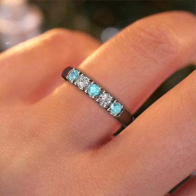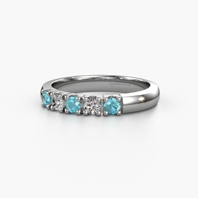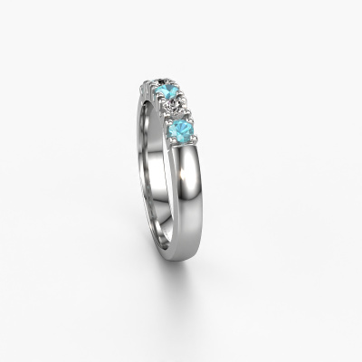This extraordinary ring is called Rianne 5. This type of ring is known as a memoire ring, because its gemstones are set in a continuous line. This makes it easy to combine with other rings. The band of this platinum ring is set in a combination of blue topaz and diamond 2.7 mm. You can easily choose the combination you prefer online. As you can see, a single blue topaz is set in this single alliance platinum ring. The memoire ring represents collaboration. And that is precisely what these gemstones do, collaborate. Together they add a beautiful effect to the band of a classic ring! Such a meaningful ring, wouldn't you agree? All our hand selected blue topaz are positioned by hand by our expert goldsmith. It's a precise task, which can only be completed successfully through the combination of pure craftsmanship and usage of the latest techniques which give it an optimal effect. To create a perfect reflection of light, all the gemstones have to be perfectly aligned in the same way. During manufacturing, the expert goldsmith will therefore monitor the reflection of light constantly to check whether the blue topaz are aligned properly. This requires a skilled hand and a lot of patience but then the end product will be a true piece of art. And that is our mission!By using a combination of the latest modern techniques, combined with ancient crafting, we can make all our rings in our own studio. Each jewel is made to order. This is advantageous because we can offer you a price you won't find anywhere else.
