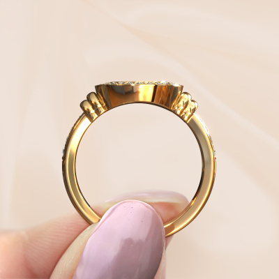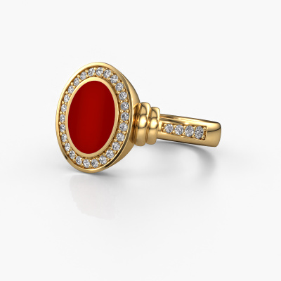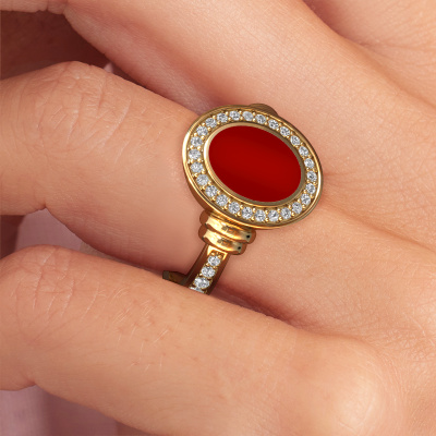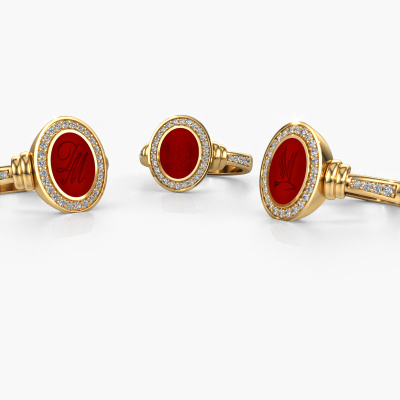 This gold women´s signet ring is a true work of art! This is our special Bailey signet ring and it is set with a oval shape carnelian. In our crafting studio, we use a combination of the latest techniques and ancient traditional craftsmanship, so we are able to create a detailed perfect signet ring. Our expert goldsmiths are fascinated by signet rings. The signet ring can be engraved with initials or a family weapon. Signet rings with family weapons can be handed down from generation to generation and that usually is the case. On top of that, a signet ring is a beautiful, classy piece of jewellery which is trending once more. More than one reason to start or extend the tradition. Please browse our online database for more options on engravings. You can find the departments of our education centre at the bottom of this page. The special Bailey signet ring, as shown here, can be customized to your liking. Our online tool offers many different options but please feel free to contact us if you want changes made to your Bailey signet ring, which are unavailable in our online tool.Because we design and deliver our own rings, we can offer you a ring at a price you won't find anywhere else. A ring is made to order, which helps prevent excess supplies, so we can make you a great price offer. We understand it feels risky, buying your ring online, but we will gladly assist in the designing process, taking your budget into consideration.To make it easier for you, we offer a 30 day return policy. Check our terms and conditions.