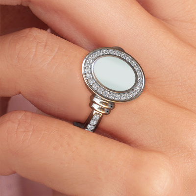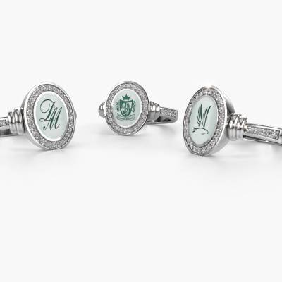 This platinum women´s signet ring is a true work of art! This is our special Bailey signet ring and it is set with a oval shape green sardonyx. In our crafting studio, we use a combination of the latest techniques and ancient traditional craftsmanship, so we are able to create a detailed perfect signet ring. Our expert goldsmiths are fascinated by signet rings. The signet ring can be engraved with initials or a family weapon. Signet rings with family weapons can be handed down from generation to generation and that usually is the case. On top of that, a signet ring is a beautiful, classy piece of jewellery which is trending once more. More than one reason to start or extend the tradition. Please browse our online database for more options on engravings. You can find the departments of our education centre at the bottom of this page. The special Bailey signet ring, as shown here, can be customized to your liking. Our online tool offers many different options but please feel free to contact us if you want changes made to your Bailey signet ring, which are unavailable in our online tool.Because we design and deliver our own rings, we can offer you a ring at a price you won't find anywhere else. A ring is made to order, which helps prevent excess supplies, so we can make you a great price offer. We understand it feels risky, buying your ring online, but we will gladly assist in the designing process, taking your budget into consideration.To make it easier for you, we offer a 30 day return policy. Check our terms and conditions.
