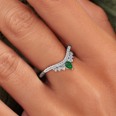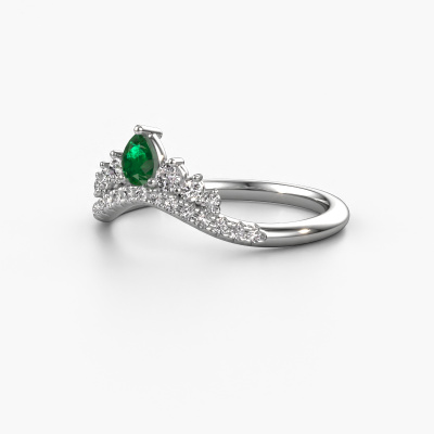 This Crown A stackable ring in 14 Carat white gold is set with emerald. This white gold stacked Crown A ring is the perfect addition to your ring collection! As the name suggests, it is a ring which can be combined on one finger with another ring. It gives you the opportunity to create your own style. A stacked ring usually represents a certain memory of someone special or a memorable moment. It is common to combine a stacked ring, representing an anniversary, with a wedding ring. But this special ring, combined with your other rings, also makes a classy fashion item. Customize your own specialCrown A stackable ring, which will then be created by our goldsmiths with great passion. Do you prefer a different option than is shown here in the white gold Crown A stackable ring? Then our online tools offers various options. Feel free to ask us for help if you are unable to succeed. We are happy to answer your questions!After receiving your order, our goldsmiths will passionately start the creative process of making your ring in our own studio. Because we don't have a big stockpile, these costs will not be passed on to you. Our pricing is proof of that! We offer top quality jewels at lowest price, guaranteed.To make it easier for you, we offer a 30 day return policy. Check our terms and conditions.