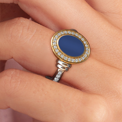 This white gold women´s signet ring is a true work of art! This is our special Bailey signet ring and it is set with a oval shape lapis. In our crafting studio, we use a combination of the latest techniques and ancient traditional craftsmanship, so we are able to create a detailed perfect signet ring. Our expert goldsmiths are fascinated by signet rings. The signet ring can be engraved with initials or a family weapon. Signet rings with family weapons can be handed down from generation to generation and that usually is the case. On top of that, a signet ring is a beautiful, classy piece of jewellery which is trending once more. More than one reason to start or extend the tradition. Please browse our online database for more options on engravings. You can find the departments of our education centre at the bottom of this page. The special Bailey signet ring, as shown here, can be customized to your liking. Our online tool offers many different options but please feel free to contact us if you want changes made to your Bailey signet ring, which are unavailable in our online tool.Because we design and deliver our own rings, we can offer you a ring at a price you won't find anywhere else. A ring is made to order, which helps prevent excess supplies, so we can make you a great price offer. We understand it feels risky, buying your ring online, but we will gladly assist in the designing process, taking your budget into consideration.To make it easier for you, we offer a 30 day return policy. Check our terms and conditions.