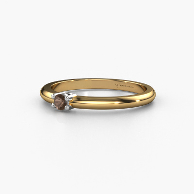 This extraordinary ring is called Michelle 1. This type of ring is known as a memoire ring, because it's birthstones are set in a continuous line. This makes it easy to combine with other rings. The band of this 14 Carat gold ring is set in a combination of smokey quartz and smokey quartz 2.7 mm. You can easily choose the combination you prefer online. As you can see, a single smokey quartz is set in this single alliance gold ring. The memoire ring represents collaboration. And that is precisely what these gemstones do, collaborate. Together they add a beautiful effect to the band of a classic ring! Such a meaningful ring, wouldn't you agree? All our hand selected smokey quartz are positioned by hand by our expert goldsmith. It's a precise task, which can only be completed successfully through the combination of pure craftsmanship and usage of the latest techniques which give it an optimal effect. To create a perfect reflection of light, all the gemstones have to be perfectly aligned in the same way. During manufacturing, the expert goldsmith will therefore monitor the reflection of light constantly to check whether the smokey quartz are aligned properly. This requires a skilled hand and a lot of patience but then the end product will be a true piece of art. And that is our mission!By using a combination of the latest modern techniques, combined with ancient crafting, we can make all our rings in our own studio. Each jewel is made to order. This is advantageous because we can offer you a price you won't find anywhere else.