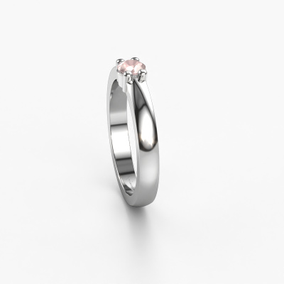 This extraordinary ring is called Yasmin 1. This type of ring is known as a memoire ring, because it's birthstones are set in a continuous line. This makes it easy to combine with other rings. The band of this 14 Carat white gold ring is set in a combination of morganite champagne and morganite champagne 4 mm. You can easily choose the combination you prefer online. As you can see, a single morganite champagne is set in this single alliance white gold ring. The memoire ring represents collaboration. And that is precisely what these gemstones do, collaborate. Together they add a beautiful effect to the band of a classic ring! Such a meaningful ring, wouldn't you agree? All our hand selected morganite champagne are positioned by hand by our expert goldsmith. It's a precise task, which can only be completed successfully through the combination of pure craftsmanship and usage of the latest techniques which give it an optimal effect. To create a perfect reflection of light, all the gemstones have to be perfectly aligned in the same way. During manufacturing, the expert goldsmith will therefore monitor the reflection of light constantly to check whether the morganite champagne are aligned properly. This requires a skilled hand and a lot of patience but then the end product will be a true piece of art. And that is our mission!Because we design and deliver our own rings, we can offer you a ring at a price you won't find anywhere else. A ring is made to order, which helps prevent excess supplies, so we can make you a great price offer. We understand it feels risky, buying your ring online, but we will gladly assist in the designing process, taking your budget into consideration.Our team of talented, passionate designers add new ring designs to our online collection daily. Our objective in doing so, is to be able to offer you a wide variety of jewels. Please feel free to request a quote if you have specific wishes for your ring. We guarantee to make you an offer you can't refuse.To make it easier for you, we offer a 30 day return policy. Check our terms and conditions.