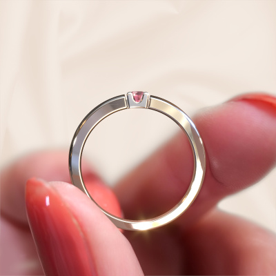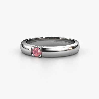 This extraordinary ring is called Rianne 1. This type of ring is known as a memoire ring, because it's birthstones are set in a continuous line. This makes it easy to combine with other rings. The band of this 14 Carat white gold ring is set in a combination of tourmaline pink and tourmaline pink 3 mm. You can easily choose the combination you prefer online. As you can see, a single tourmaline pink is set in this single alliance white gold ring. The memoire ring represents collaboration. And that is precisely what these gemstones do, collaborate. Together they add a beautiful effect to the band of a classic ring! Such a meaningful ring, wouldn't you agree? All our hand selected tourmaline pink are positioned by hand by our expert goldsmith. It's a precise task, which can only be completed successfully through the combination of pure craftsmanship and usage of the latest techniques which give it an optimal effect. To create a perfect reflection of light, all the gemstones have to be perfectly aligned in the same way. During manufacturing, the expert goldsmith will therefore monitor the reflection of light constantly to check whether the tourmaline pink are aligned properly. This requires a skilled hand and a lot of patience but then the end product will be a true piece of art. And that is our mission!By using a combination of the latest modern techniques, combined with ancient crafting, we can make all our rings in our own studio. Each jewel is made to order. This is advantageous because we can offer you a price you won't find anywhere else.Our team of talented, passionate designers add new ring designs to our online collection daily. Our objective in doing so, is to be able to offer you a wide variety of jewels. Please feel free to request a quote if you have specific wishes for your ring. We guarantee to make you an offer you can't refuse.To make it easier for you, we offer a 30 day return policy. Check our terms and conditions.