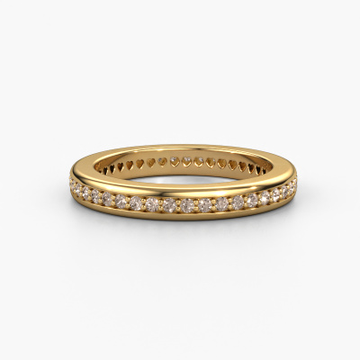 This extraordinary ring is called Elvire 3. This type of ring is known as a memoire ring, because it's birthstones are set in a continuous line. This makes it easy to combine with other rings. The band of this 14 Carat gold stackable ring is set in a combination of brown diamond and brown diamond 0.48 crt. You can easily choose the combination you prefer online. As you can see, a single brown diamond is set in this single alliance gold stackable ring. The memoire ring represents collaboration. And that is precisely what these gemstones do, collaborate. Together they add a beautiful effect to the band of a modern stackable ring! Such a meaningful ring, wouldn't you agree? All our hand selected brown diamonds are positioned by hand by our expert goldsmith. It's a precise task, which can only be completed successfully through the combination of pure craftsmanship and usage of the latest techniques which give it an optimal effect. To create a perfect reflection of light, all the gemstones have to be perfectly aligned in the same way. During manufacturing, the expert goldsmith will therefore monitor the reflection of light constantly to check whether the brown diamonds are aligned properly. This requires a skilled hand and a lot of patience but then the end product will be a true piece of art. And that is our mission!By using a combination of the latest modern techniques, combined with ancient crafting, we can make all our rings in our own studio. Each jewel is made to order. This is advantageous because we can offer you a price you won't find anywhere else.Our team of talented, passionate designers add new ring designs to our online collection daily. Our objective in doing so, is to be able to offer you a wide variety of jewels. Please feel free to request a quote if you have specific wishes for your ring. We guarantee to make you an offer you can't refuse.To make it easier for you, we offer a 30 day return policy. Check our terms and conditions.