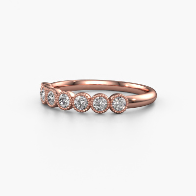 This extraordinary ring is called Mariam half. This type of ring is known as a memoire ring, because it's birthstones are set in a continuous line. This makes it easy to combine with other rings. The band of this 14 Carat rose gold ring is set in a combination of diamond and diamond 0.385 crt. You can easily choose the combination you prefer online. As you can see, a single diamond is set in this single alliance rose gold ring. The memoire ring represents collaboration. And that is precisely what these gemstones do, collaborate. Together they add a beautiful effect to the band of a fantasy ring! Such a meaningful ring, wouldn't you agree? All our hand selected diamonds are positioned by hand by our expert goldsmith. It's a precise task, which can only be completed successfully through the combination of pure craftsmanship and usage of the latest techniques which give it an optimal effect. To create a perfect reflection of light, all the gemstones have to be perfectly aligned in the same way. During manufacturing, the expert goldsmith will therefore monitor the reflection of light constantly to check whether the diamonds are aligned properly. This requires a skilled hand and a lot of patience but then the end product will be a true piece of art. And that is our mission!Are you on a budget? Please feel free to contact us, so we can go discuss your options. We offer our rings at guaranteed best price, because we make them to order. You won't find such a price anywhere else!