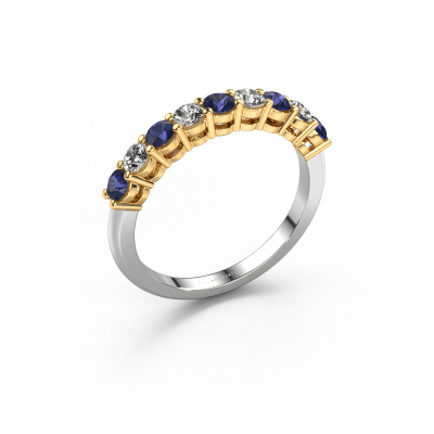 This extraordinary ring is called Michelle 9. This type of ring is known as a memoire ring, because its gemstones are set in a continuous line. This makes it easy to combine with other rings. The band of this 14 Carat white gold ring is set in a combination of sapphire and lab grown diamond 2.7 mm. You can easily choose the combination you prefer online. As you can see, a single sapphire is set in this single alliance white gold ring. The memoire ring represents collaboration. And that is precisely what these gemstones do, collaborate. Together they add a beautiful effect to the band of a classic ring! Such a meaningful ring, wouldn't you agree? All our hand selected sapphire are positioned by hand by our expert goldsmith. It's a precise task, which can only be completed successfully through the combination of pure craftsmanship and usage of the latest techniques which give it an optimal effect. To create a perfect reflection of light, all the gemstones have to be perfectly aligned in the same way. During manufacturing, the expert goldsmith will therefore monitor the reflection of light constantly to check whether the sapphire are aligned properly. This requires a skilled hand and a lot of patience but then the end product will be a true piece of art. And that is our mission!Because we design and deliver our own rings, we can offer you a ring at a price you won't find anywhere else. A ring is made to order, which helps prevent excess supplies, so we can make you a great price offer. We understand it feels risky, buying your ring online, but we will gladly assist in the designing process, taking your budget into consideration.Our team of talented, passionate designers add new ring designs to our online collection daily. Our objective in doing so, is to be able to offer you a wide variety of jewels. Please feel free to request a quote if you have specific wishes for your ring. We guarantee to make you an offer you can't refuse.To make it easier for you, we offer a 30 day return policy. Check our terms and conditions.