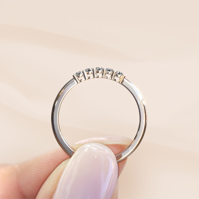 This extraordinary ring is called Michelle 5. This type of ring is known as a memoire ring, because its gemstones are set in a continuous line. This makes it easy to combine with other rings. The band of this 14 Carat white gold ring is set in a combination of diamond and lab grown diamond 0.15 crt. You can easily choose the combination you prefer online. As you can see, a single diamond is set in this single alliance white gold ring. The memoire ring represents collaboration. And that is precisely what these gemstones do, collaborate. Together they add a beautiful effect to the band of a classic ring! Such a meaningful ring, wouldn't you agree? All our hand selected diamonds are positioned by hand by our expert goldsmith. It's a precise task, which can only be completed successfully through the combination of pure craftsmanship and usage of the latest techniques which give it an optimal effect. To create a perfect reflection of light, all the gemstones have to be perfectly aligned in the same way. During manufacturing, the expert goldsmith will therefore monitor the reflection of light constantly to check whether the diamonds are aligned properly. This requires a skilled hand and a lot of patience but then the end product will be a true piece of art. And that is our mission!Are you on a budget? Please feel free to contact us, so we can go discuss your options. We offer our rings at guaranteed best price, because we make them to order. You won't find such a price anywhere else!