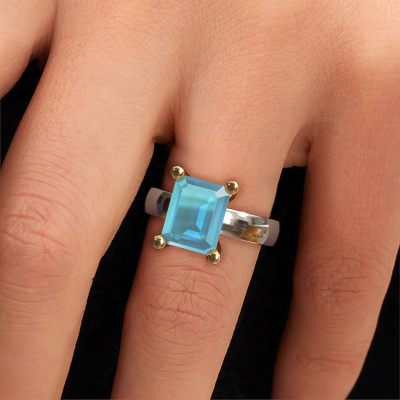 Are you looking for a birthstones ring with an eye-catching single gemstone? How do you like this Clelia EME ring? This white gold Clelia EME ring is set with a beautiful 10x8 mm emerald cut blue topaz. The blue topaz is carefully selected by our blue topaz suppliers. Subsequently, these gemstones are then set by our goldsmith according to ancient tradition. The ring will then be polished to perfection creating a unique ring with a stunning blue topaz. Created especially for you. A customized modern ring is the perfect gift! New exquisite designs are added daily by our team of passionate goldsmiths. And each design can be customized. Simply customize the precious metals and the colour of gemstones which will be used, for example. This makes your design of the modern Clelia EME ring truly unique!After receiving your order, our goldsmiths will start the creative process of making your Clelia EME ring. We don't keep stock. This is advantageous because these costs will not be passed on to you. Therefore, we can offer jewellery at exceptionally low prices.To make it easier for you, we offer a 30 day return policy. Check our terms and conditions.