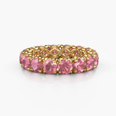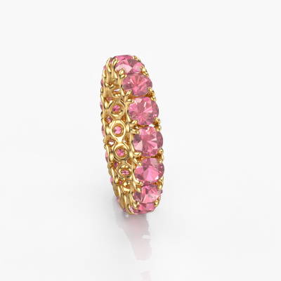 This Estee 4.2 ring in 14 Carat gold is set with tourmaline pink. This gold stacked Estee 4.2 ring is the perfect addition to your ring collection! As the name suggests, it is a ring which can be combined on one finger with another ring. It gives you the opportunity to create your own style. A stacked ring usually represents a certain memory of someone special or a memorable moment. It is common to combine a stacked ring, representing an anniversary, with a wedding ring. But this eternity ring, combined with your other rings, also makes a classy fashion item. The eternity Estee 4.2 ring, as shown here, can be customized to your liking. Our online tool offers many different options but please feel free to contact us if you want changes made to your Estee 4.2 ring, which are unavailable in our online tool.After receiving your order, our goldsmiths will passionately start the creative process of making your ring in our own studio. Because we don't have a big stockpile, these costs will not be passed on to you. Our pricing is proof of that! We offer top quality jewels at lowest price, guaranteed.To make it easier for you, we offer a 30 day return policy. Check our terms and conditions.