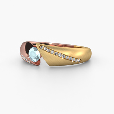 This is a stunning special rose gold Hojalien 2 ring. It is set with aquamarine. A designer ring, fit for classy women. The ring is designed by our own expert goldsmiths. In our artisan studio, we use a combination of the latest techniques and ancient traditional craftsmanship, so we are able to create a perfectly designed ring. Our expert goldsmiths strive for perfection so they won't stop until a perfect ring, a true work of art, is created. A unique ring which matches your own style. Customize your own specialHojalien 2 ring, which will then be created by our goldsmiths with great passion. Do you prefer a different option than is shown here in the rose gold Hojalien 2 ring? Then our online tools offers various options. Feel free to ask us for help if you are unable to succeed. We are happy to answer your questions!Are you on a budget? Please feel free to contact us, so we can go discuss your options. We offer our rings at guaranteed best price, because we make them to order. You won't find such a price anywhere else!To make it easier for you, we offer a 30 day return policy. Check our terms and conditions.