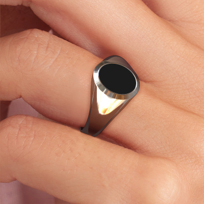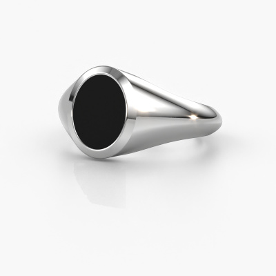 This white gold women´s signet ring is a true work of art! This is our beautiful Evon 1 signet ring and it is set with a oval shape black enamel. In our crafting studio, we use a combination of the latest techniques and ancient traditional craftsmanship, so we are able to create a detailed perfect signet ring. Our expert goldsmiths are fascinated by signet rings. The signet ring can be engraved with initials or a family weapon. Signet rings with family weapons can be handed down from generation to generation and that usually is the case. On top of that, a signet ring is a beautiful, classy piece of jewellery which is trending once more. More than one reason to start or extend the tradition. Please browse our online database for more options on engravings. You can find the departments of our education centre at the bottom of this page. Our goldsmiths passionately create your customized signet ring to your liking with the utmost care. The white gold signet ring, as shown here, can be customized using our online tool. Feel free to ask our jewel designers for assistance if you want changes made which are unavailable in our online tool. We are happy to answer your questions.After receiving your order, our goldsmiths will passionately start the creative process of making your ring in our own studio. Because we don't have a big stockpile, these costs will not be passed on to you. Our pricing is proof of that! We offer top quality jewels at lowest price, guaranteed.To make it easier for you, we offer a 30 day return policy. Check our terms and conditions.