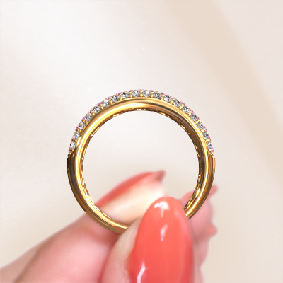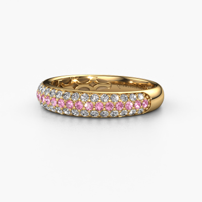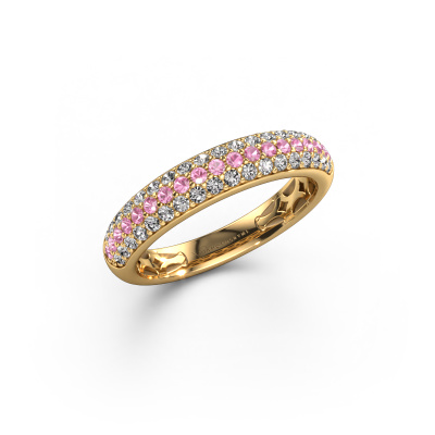 This Emely 4 ring in 14 Carat gold is set with pink sapphire. This gold stacked Emely 4 ring is the perfect addition to your ring collection! As the name suggests, it is a ring which can be combined on one finger with another ring. It gives you the opportunity to create your own style. A stacked ring usually represents a certain memory of someone special or a memorable moment. It is common to combine a stacked ring, representing an anniversary, with a wedding ring. But this narrow ring, combined with your other rings, also makes a classy fashion item. As soon as you finished designing your Emely 4 ring with our online tool, our goldsmiths will start their creative process of making your ring. This will be done with passion and care, according ancient crafting. On top of that, our jewels are made of eco-friendly materials. Simply customize online with our online tool, if you want any changes made. If you want specific changes made to your Emely 4 ring, that are unavailable in our online tool, please feel free to contact our expert designers.By using a combination of the latest modern techniques, combined with ancient crafting, we can make all our rings in our own studio. Each jewel is made to order. This is advantageous because we can offer you a price you won't find anywhere else.To make it easier for you, we offer a 30 day return policy. Check our terms and conditions.