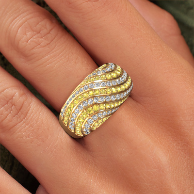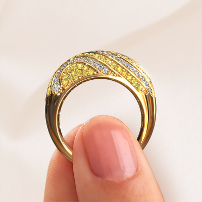 This exclusive gold Sonia ring is a true work of art! This ring is made of 14 Carat gold and is set with 1 mm round yellow sapphire. The smallest ornaments are crafted by our goldsmith with a lot of patience and great passion. In order to create this ring with great precision, this craft requires a keen eye and a skilful hand. A challenge which ignites a fire in our expert goldsmiths. The exquisite yellow sapphire are set in a way that their unique qualities are strengthened. This gives the ring an even more glamorous appearance. The ring is unique by itself though, because of the natural birthstones we selected especially for this Sonia ring. And by choosing the precious metal yourself, you create a unique ring. A customized luxury ring is the perfect gift! New exquisite designs are added daily by our team of passionate goldsmiths. And each design can be customized. Simply customize the precious metals and the colour of gemstones which will be used, for example. This makes your design of the luxury sonia ring truly unique!After receiving your order, our goldsmiths will passionately start the creative process of making your ring in our own studio. Because we don't have a big stockpile, these costs will not be passed on to you. Our pricing is proof of that! We offer top quality jewels at lowest price, guaranteed.To make it easier for you, we offer a 30 day return policy. Check our terms and conditions.