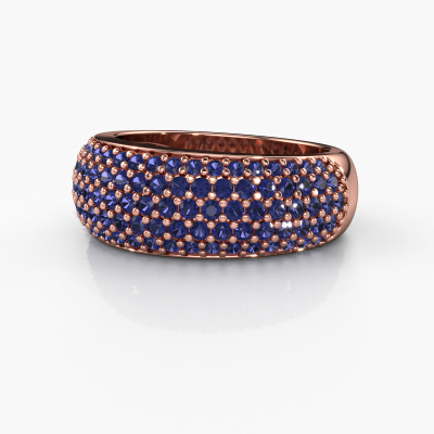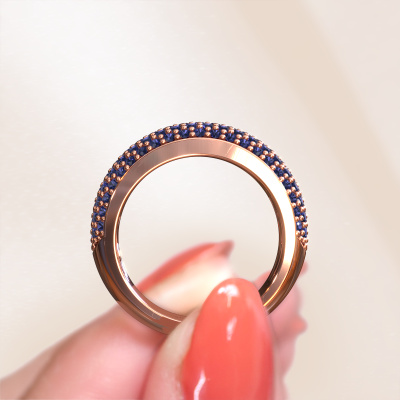 This pave set ring is called Cristy. This 14 Carat rose gold ring is set with sapphire 1.2 mm. The band of this rose gold ring is set with rows of sapphire which seem to have no beginning nor end. Our goldsmith carefully selects the gemstones and sets them with the utmost precision. For maximum shine, the sapphire have to align perfectly. While artfully crafting and polishing the jewellery, light fall is constantly monitored, until the expert goldsmith is satisfied with the result. Designed by you, created especially for you!As soon as you finished designing your Cristy ring with our online tool, our goldsmiths will start their creative process of making your ring. This will be done with passion and care, according ancient crafting. On top of that, our jewels are made of eco-friendly materials. Simply customize online with our online tool, if you want any changes made. If you want specific changes made to your Cristy ring, that are unavailable in our online tool, please feel free to contact our expert designers.Because we design and deliver our own rings, we can offer you a ring at a price you won't find anywhere else. A ring is made to order, which helps prevent excess supplies, so we can make you a great price offer. We understand it feels risky, buying your ring online, but we will gladly assist in the designing process, taking your budget into consideration.To make it easier for you, we offer a 30 day return policy. Check our terms and conditions.