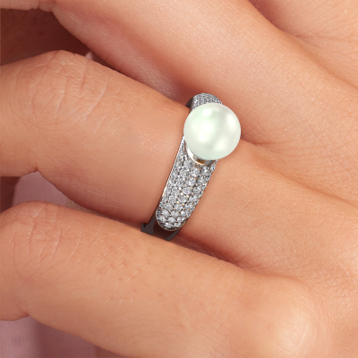 This pave set ring is called Anisa. This platinum ring is set with white pearls 7 mm. The band of this platinum ring is set with rows of white pearls which seem to have no beginning nor end. Our goldsmith carefully selects the gemstones and sets them with the utmost precision. For maximum shine, the white pearls have to align perfectly. While artfully crafting and polishing the jewellery, light fall is constantly monitored, until the expert goldsmith is satisfied with the result. Designed by you, created especially for you!The pavé set Anisa ring, as shown here, can be customized to your liking. Our online tool offers many different options but please feel free to contact us if you want changes made to your Anisa ring, which are unavailable in our online tool.By using a combination of the latest modern techniques, combined with ancient crafting, we can make all our rings in our own studio. Each jewel is made to order. This is advantageous because we can offer you a price you won't find anywhere else.To make it easier for you, we offer a 30 day return policy. Check our terms and conditions.