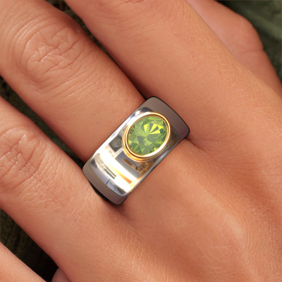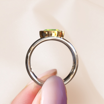 Are you looking for a birthstones ring with an eye-catching single gemstone? How do you like this Anouschka ring? This white gold Anouschka ring is set with a beautiful 8x6 mm oval peridot. The peridot is carefully selected by our peridot suppliers. Subsequently, these birthstones are then set by our goldsmith according to ancient tradition. The ring will then be polished to perfection creating a unique ring with a stunning peridot. Created especially for you. Our goldsmiths passionately create your customized ring to your liking with the utmost care. The white gold ring, as shown here, can be customized using our online tool. Feel free to ask our jewel designers for assistance if you want changes made which are unavailable in our online tool. We are happy to answer your questions.After receiving your order, our goldsmiths will passionately start the creative process of making your ring in our own studio. Because we don't have a big stockpile, these costs will not be passed on to you. Our pricing is proof of that! We offer top quality jewels at lowest price, guaranteed.To make it easier for you, we offer a 30 day return policy. Check our terms and conditions.