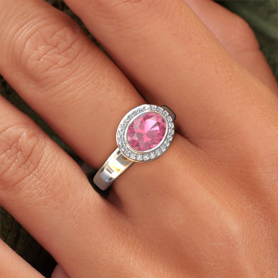 Are you looking for a birthstones ring with an eye-catching single gemstone? How do you like this Salena ring? This platinum Salena ring is set with a beautiful 8x6 mm oval pink sapphire. The pink sapphire is carefully selected by our pink sapphire suppliers. Subsequently, these birthstones are then set by our goldsmith according to ancient tradition. The ring will then be polished to perfection creating a unique ring with a stunning pink sapphire. Created especially for you. The best part of this birthstones ring is that you can customize it to your own liking. Your style, your choice, your ring. On top of that, your design platinum ring will be made by hand with eco-friendly materials! Please feel free to easily customize the ring, using our online tool.By using a combination of the latest modern techniques, combined with ancient crafting, we can make all our rings in our own studio. Each jewel is made to order. This is advantageous because we can offer you a price you won't find anywhere else.To make it easier for you, we offer a 30 day return policy. Check our terms and conditions.