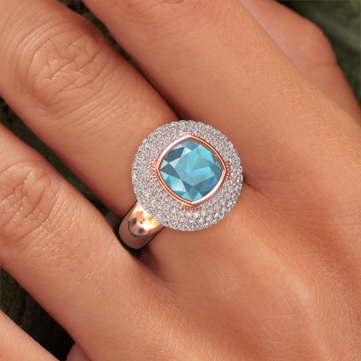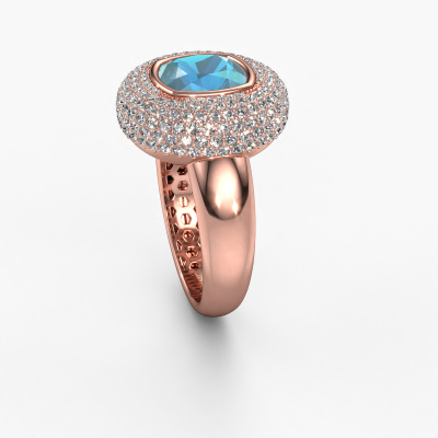 This exclusive rose gold Keshia ring is a true work of art! This ring is made of 14 Carat rose gold and is set with 8 mm cushion blue topaz. The smallest ornaments are crafted by our goldsmith with a lot of patience and great passion. In order to create this ring with great precision, this craft requires a keen eye and a skilful hand. A challenge which ignites a fire in our expert goldsmiths. The exquisite blue topaz are set in a way that their unique qualities are strengthened. This gives the ring an even more glamorous appearance. The ring is unique by itself though, because of the natural birthstones we selected especially for this Keshia ring. And by choosing the precious metal yourself, you create a unique ring. Our goldsmiths passionately create your customized ring to your liking with the utmost care. The rose gold ring, as shown here, can be customized using our online tool. Feel free to ask our jewel designers for assistance if you want changes made which are unavailable in our online tool. We are happy to answer your questions.By using our modern techniques, we can design and customize the finest quality jewels with the utmost care for you. Our rings are always priced 30 percent lower than other jewellers. We make rings to order, so we don't have to maintain a large stock. If you have a certain budget, we are more than happy to advice you accordingly.To make it easier for you, we offer a 30 day return policy. Check our terms and conditions.
