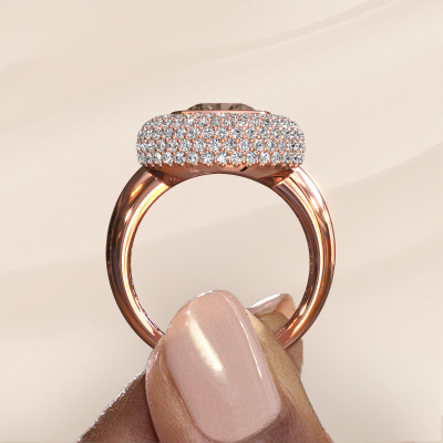 This exclusive rose gold Keshia ring is a true work of art! This ring is made of 14 Carat rose gold and is set with 3.803 crt cushion brown diamond. The smallest ornaments are crafted by our goldsmith with a lot of patience and great passion. In order to create this ring with great precision, this craft requires a keen eye and a skilful hand. A challenge which ignites a fire in our expert goldsmiths. The exquisite brown diamonds are set in a way that their unique qualities are strengthened. This gives the ring an even more glamorous appearance. The ring is unique by itself though, because of the natural birthstones we selected especially for this Keshia ring. And by choosing the precious metal yourself, you create a unique ring. Our goldsmiths passionately create your customized ring to your liking with the utmost care. The rose gold ring, as shown here, can be customized using our online tool. Feel free to ask our jewel designers for assistance if you want changes made which are unavailable in our online tool. We are happy to answer your questions.By using our modern techniques, we can design and customize the finest quality jewels with the utmost care for you. Our rings are always priced 30 percent lower than other jewellers. We make rings to order, so we don't have to maintain a large stock. If you have a certain budget, we are more than happy to advice you accordingly.To make it easier for you, we offer a 30 day return policy. Check our terms and conditions.