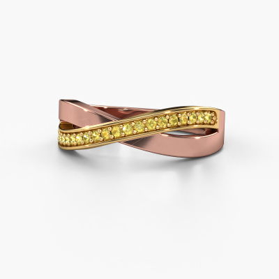 This ring is called Kaley. It is made of 14 Carat rose gold and is set with 1.2 mm yellow sapphire. Are you looking for a unique rose gold ring with a modern appearance? Then this is the ring for you. Simply customize to your or her liking. Perfect for a modern, contemporary woman! This elegant ring is adorned with stunning yellow sapphire. It was carefully selected because your ring must be adorned with nothing but the most beautiful gemstones. Our expert goldsmith will create your ring in our own studio, where the yellow sapphire will be set with great care. The ring will then be polished to perfection to create a beautiful ring. By using a combination of the latest modern techniques, combined with ancient crafting, we can make all our rings in our own studio. Each jewel is made to order. This is advantageous because we can offer you a price you won't find anywhere else.New jewellery designs are added to our online collection daily. Our team of passionate designers strive to create extraordinary and diverse designs. Have you seen a ring you like? Please feel free to contact us. Based on a good price/ quality ratio, we will make you an offer you can't refuse!To make it easier for you, we offer a 30 day return policy. Check our terms and conditions.