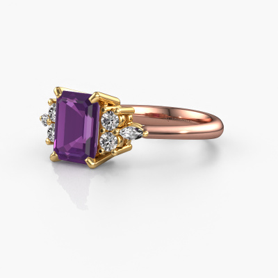 How would you describe your own style? Are you looking for something uniquely different? This fashionable rose gold Sade ring is astonishing! Simply customize to your or her own liking. This ring is set with amethyst. These amethysten have been carefully selected because your ring must be adorned with nothing but the most beautiful gemstone. Wouldn't you agree? Our expert goldsmith will create your ring in our own crafting studios, where the amethyst will be set with care. The ring will then be polished to perfection to give it that extra sparkle. It's a perfect ring for a woman of excellent taste!As soon as you finished designing your Sade ring with our online tool, our goldsmiths will start their creative process of making your ring. This will be done with passion and care, according ancient crafting. On top of that, our jewels are made of eco-friendly materials. Simply customize online with our online tool, if you want any changes made. If you want specific changes made to your Sade ring, that are unavailable in our online tool, please feel free to contact our expert designers.By using a combination of the latest modern techniques, combined with ancient crafting, we can make all our rings in our own studio. Each jewel is made to order. This is advantageous because we can offer you a price you won't find anywhere else.To make it easier for you, we offer a 30 day return policy. Check our terms and conditions.