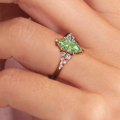 How would you describe your own style? Are you looking for something uniquely different? This daring rose gold Royce MRQ ring is astonishing! Simply customize to your or her own liking. This ring is set with green lab grown diamond. These green lab