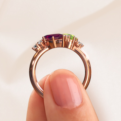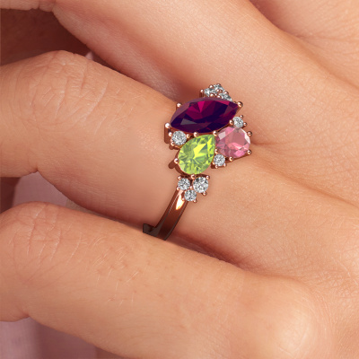 How would you describe your own style? Are you looking for something uniquely different? This special rose gold Amanda ring is astonishing! Simply customize to your or her own liking. This ring is set with rhodolite. These rhodolite have been carefully selected because your ring must be adorned with nothing but the most beautiful gemstone. Wouldn't you agree? Our expert goldsmith will create your ring in our own crafting studios, where the rhodolite will be set with care. The ring will then be polished to perfection to give it that extra sparkle. It's a perfect ring for a woman of excellent taste!Customize your own specialAmanda ring, which will then be created by our goldsmiths with great passion. Do you prefer a different option than is shown here in the rose gold Amanda ring? Then our online tools offers various options. Feel free to ask us for help if you are unable to succeed. We are happy to answer your questions!Because we design and deliver our own rings, we can offer you a ring at a price you won't find anywhere else. A ring is made to order, which helps prevent excess supplies, so we can make you a great price offer. We understand it feels risky, buying your ring online, but we will gladly assist in the designing process, taking your budget into consideration.To make it easier for you, we offer a 30 day return policy. Check our terms and conditions.