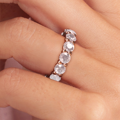 This exclusive rose gold Heddy rnd 4.2 ring is a true work of art! This ring is made of 14 Carat rose gold and is set with 4.2 mm round morganite champagne. The smallest ornaments are crafted by our goldsmith with a lot of patience and great passion. In order to create this ring with great precision, this craft requires a keen eye and a skilful hand. A challenge which ignites a fire in our expert goldsmiths. The exquisite morganite champagne are set in a way that their unique qualities are strengthened. This gives the ring an even more glamorous appearance. The ring is unique by itself though, because of the natural birthstones we selected especially for this Heddy rnd 4.2 ring. And by choosing the precious metal yourself, you create a unique ring. The best part of this eternity ring is that you can customize it to your own liking. Your style, your choice, your ring. On top of that, your exclusive rose gold ring will be made by hand with eco-friendly materials! Please feel free to easily customize the ring, using our online tool.After receiving your order, our goldsmiths will start the creative process of making your Heddy rnd 4.2 ring. We don't keep stock. This is advantageous because these costs will not be passed on to you. Therefore, we can offer jewellery at exceptionally low prices.To make it easier for you, we offer a 30 day return policy. Check our terms and conditions.