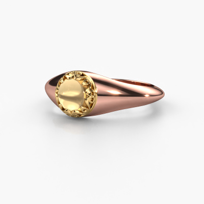 In this photo the rose gold Birgit ring is set with a cabochon citrin. Cabochon means a citrin is shaped first, not faceted, into a specific shape, such as a drop, heart or round cabochon. Subsequently, it is polished until the gemstone has a orb shaped surface. A cabochon gemstone is a stunning, classy eye-catcher that matches perfectly with a contemporary as well as a vintage style. Our expert goldsmiths shape the royal ring to perfection which makes it unique. The cabochon citrin is set so its unique qualities are strengthened. The royal Birgit ring, as shown here, can be customized to your liking. Our online tool offers many different options but please feel free to contact us if you want changes made to your Birgit ring, which are unavailable in our online tool.Because we design and deliver our own rings, we can offer you a ring at a price you won't find anywhere else. A ring is made to order, which helps prevent excess supplies, so we can make you a great price offer. We understand it feels risky, buying your ring online, but we will gladly assist in the designing process, taking your budget into consideration.To make it easier for you, we offer a 30 day return policy. Check our terms and conditions.