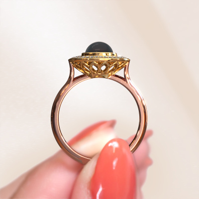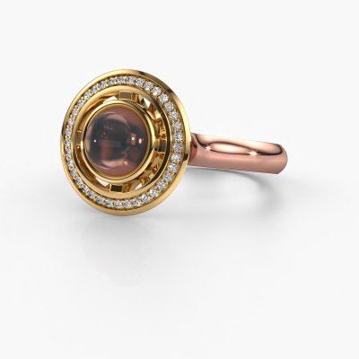 In this photo the rose gold Salima ring is set with a cabochon smokey quartz. Cabochon means a smokey quartz is shaped first, not faceted, into a specific shape, such as a drop, heart or round cabochon. Subsequently, it is polished until the gemstone has a orb shaped surface. A cabochon gemstone is a stunning, classy eye-catcher that matches perfectly with a contemporary as well as a vintage style. Our expert goldsmiths shape the special ring to perfection which makes it unique. The cabochon smokey quartz is set so its unique qualities are strengthened. How do you like this design rose gold ring? Simply customize this Salima ring, using our online tool. Subsequently, your personal special Salima ring will be made by hand by our goldsmiths. Precious metals and gemstones can be customized to your liking. Do you have specific preferences which are unavailable in our online tool? Please feel free to contact us. We will customize your personal design ring to your liking.After receiving your order, our goldsmiths will passionately start the creative process of making your ring in our own studio. Because we don't have a big stockpile, these costs will not be passed on to you. Our pricing is proof of that! We offer top quality jewels at lowest price, guaranteed.To make it easier for you, we offer a 30 day return policy. Check our terms and conditions.