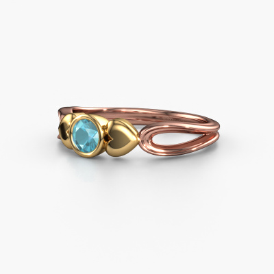 This symbolic rose gold Lorrine ring is set with blue topaz. For some, a ring is nothing more than a beautiful fashion item but they can become a meaningful keepsake. A ring such as this can be worn daily and it matches numerous different styles. Designing your own unique ring, makes it even more special. You are reminded of its uniqueness every time you look at it. Perhaps it reminds you of someone special. It might bring back memories. Unforgettable moments, represented in one ring. The beauty of it all is that the used precious metals and gemstones will last a lifetime. A lifetime of memories deserves nothing less! The best part of this symbolic ring is that you can customize it to your own liking. Your style, your choice, your ring. On top of that, your fantasy rose gold ring will be made by hand with eco-friendly materials! Please feel free to easily customize the ring, using our online tool.After receiving your order, our goldsmiths will start the creative process of making your Lorrine ring. We don't keep stock. This is advantageous because these costs will not be passed on to you. Therefore, we can offer jewellery at exceptionally low prices.To make it easier for you, we offer a 30 day return policy. Check our terms and conditions.
