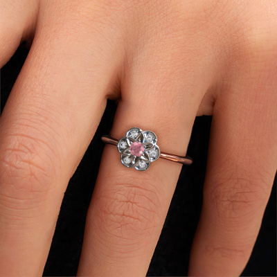 How would you describe your own style? Are you looking for something uniquely different? This cluster rose gold Uma ring is astonishing! Simply customize to your or her own liking. This ring is set with tourmaline pink. These tourmaline pink have been carefully selected because your ring must be adorned with nothing but the most beautiful gemstone. Wouldn't you agree? Our expert goldsmith will create your ring in our own crafting studios, where the tourmaline pink will be set with care. The ring will then be polished to perfection to give it that extra sparkle. It's a perfect ring for a woman of excellent taste!As soon as you finished designing your Uma ring with our online tool, our goldsmiths will start their creative process of making your ring. This will be done with passion and care, according ancient crafting. On top of that, our jewels are made of eco-friendly materials. Simply customize online with our online tool, if you want any changes made. If you want specific changes made to your Uma ring, that are unavailable in our online tool, please feel free to contact our expert designers.Are you on a budget? Please feel free to contact us, so we can go discuss your options. We offer our rings at guaranteed best price, because we make them to order. You won't find such a price anywhere else!To make it easier for you, we offer a 30 day return policy. Check our terms and conditions.