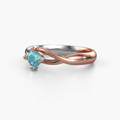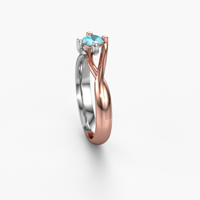 This ring is called Paulien. It is made of 14 Carat rose gold and is set with 4.2 mm blue topaz. Are you looking for a unique rose gold ring with a modern appearance? Then this is the ring for you. Simply customize to your or her liking. Perfect for a modern, contemporary woman! This special ring is adorned with stunning blue topaz. It was carefully selected because your ring must be adorned with nothing but the most beautiful gemstones. Our expert goldsmith will create your ring in our own studio, where the blue topaz will be set with great care. The ring will then be polished to perfection to create a beautiful ring. After receiving your order, our goldsmiths will start the creative process of making your Paulien ring. We don't keep stock. This is advantageous because these costs will not be passed on to you. Therefore, we can offer jewellery at exceptionally low prices.