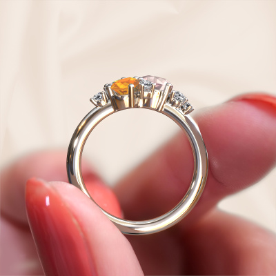 How would you describe your own style? Are you looking for something uniquely different? This royal platinum Anja ring is astonishing! Simply customize to your or her own liking. This ring is set with morganite champagne. These morganite champagne have been carefully selected because your ring must be adorned with nothing but the most beautiful gemstone. Wouldn't you agree? Our expert goldsmith will create your ring in our own crafting studios, where the morganite champagne will be set with care. The ring will then be polished to perfection to give it that extra sparkle. It's a perfect ring for a woman of excellent taste!The royal Anja ring, as shown here, can be customized to your liking. Our online tool offers many different options but please feel free to contact us if you want changes made to your Anja ring, which are unavailable in our online tool.By using a combination of the latest modern techniques, combined with ancient crafting, we can make all our rings in our own studio. Each jewel is made to order. This is advantageous because we can offer you a price you won't find anywhere else.To make it easier for you, we offer a 30 day return policy. Check our terms and conditions.