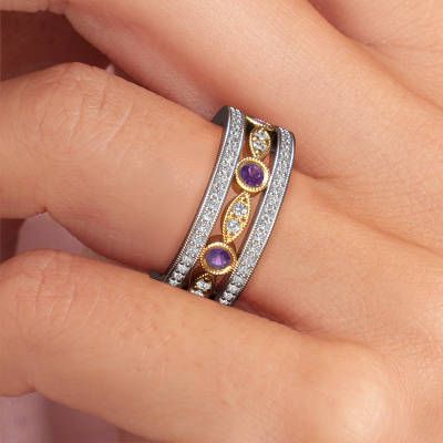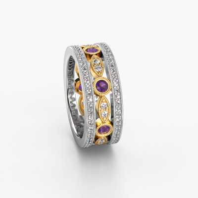 Do you have a vintage fetish? Then this white gold Jessica ring suits you perfectly. It's a contemporary design, based on vintage designs. A slightly romantic, extraordinary design! Even more when you customize to your liking. This special ring is set with exquisite amethysten. As you can see, you can simply choose a gemstone that matches your style. Each gemstone is carefully selected by our merchants whom are spread throughout the world. Nothing but the best gems for our expert goldsmith! After all, it is his crowning glory!The special Jessica ring, as shown here, can be customized to your liking. Our online tool offers many different options but please feel free to contact us if you want changes made to your Jessica ring, which are unavailable in our online tool.Because we design and deliver our own rings, we can offer you a ring at a price you won't find anywhere else. A ring is made to order, which helps prevent excess supplies, so we can make you a great price offer. We understand it feels risky, buying your ring online, but we will gladly assist in the designing process, taking your budget into consideration.To make it easier for you, we offer a 30 day return policy. Check our terms and conditions.